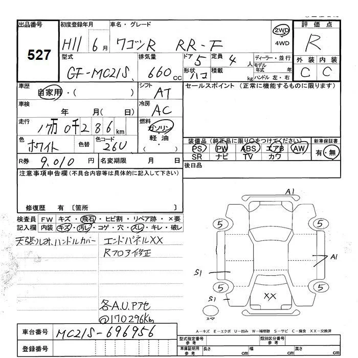 Suzuki WAGON R с аукциона Японии JU Shizuoka лот № 527