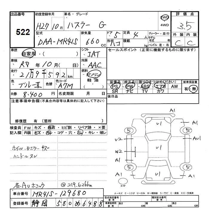 Suzuki HUSTLER с аукциона Японии JU Shizuoka лот № 522