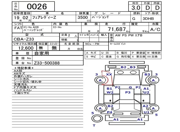 Nissan FAIRLADYZ с аукциона Японии NAA Fukuoka лот № 26