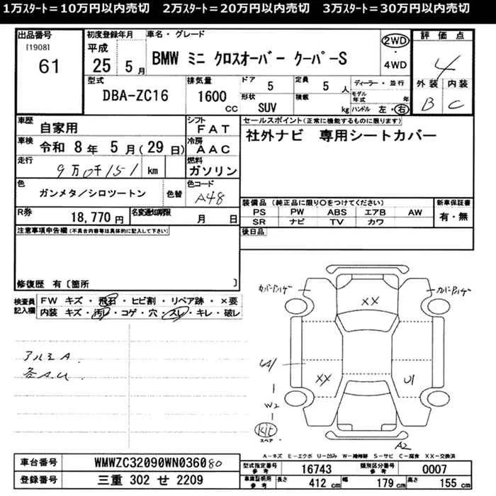 BMW MINI с аукциона Японии JU Mie лот № 61