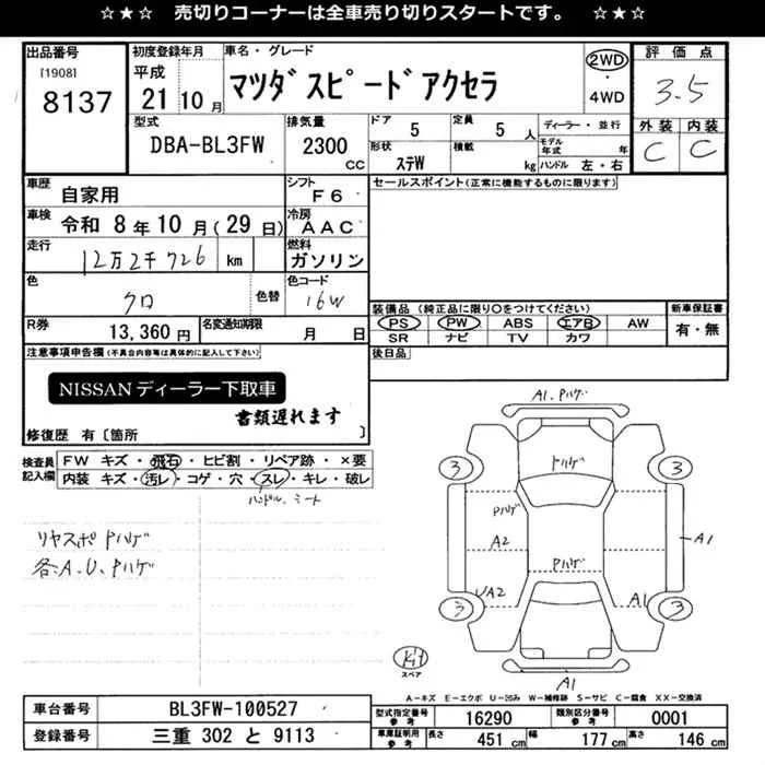 Mazda AXELA с аукциона Японии JU Mie лот № 8137