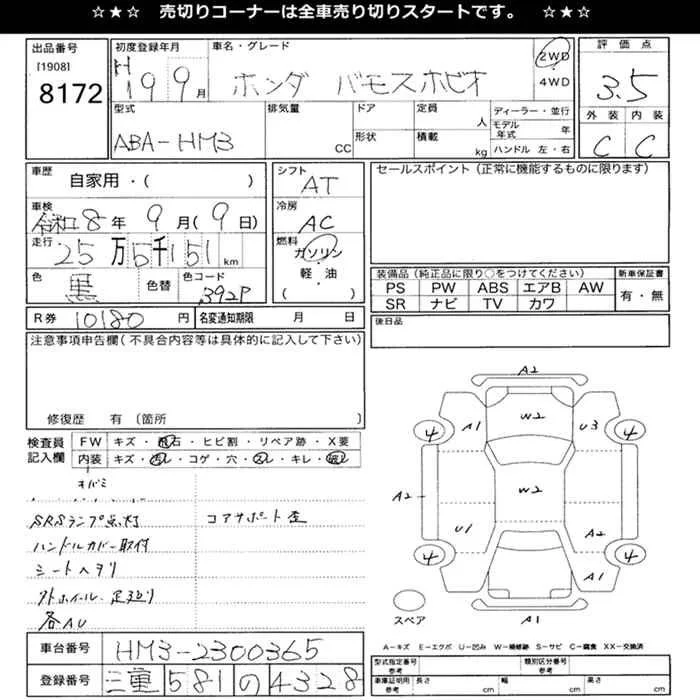 Honda VAMOS с аукциона Японии JU Mie лот № 8172