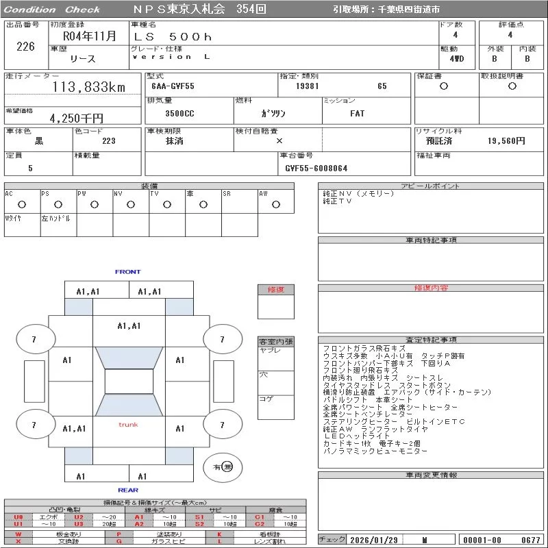 Lexus LS с аукциона Японии NPS Tokyo Nyusatsu лот № 226