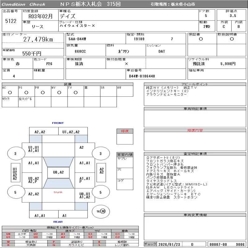 Nissan DAYZ с аукциона Японии NPS Tochigi Nyusatsu лот № 5122