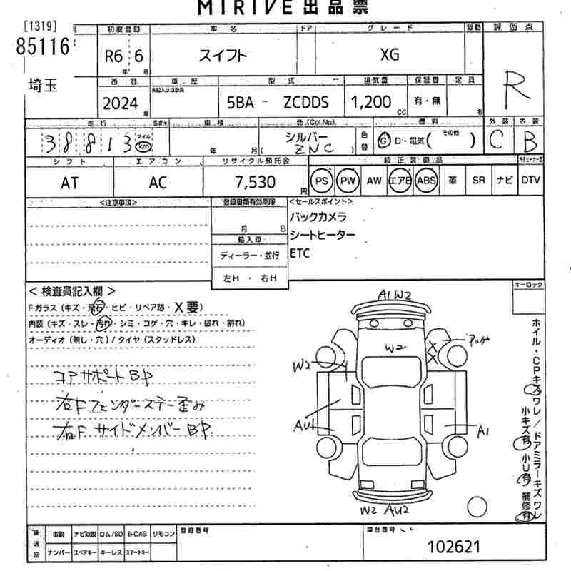 Suzuki SWIFT с аукциона Японии MIRIVE Saitama лот № 85116