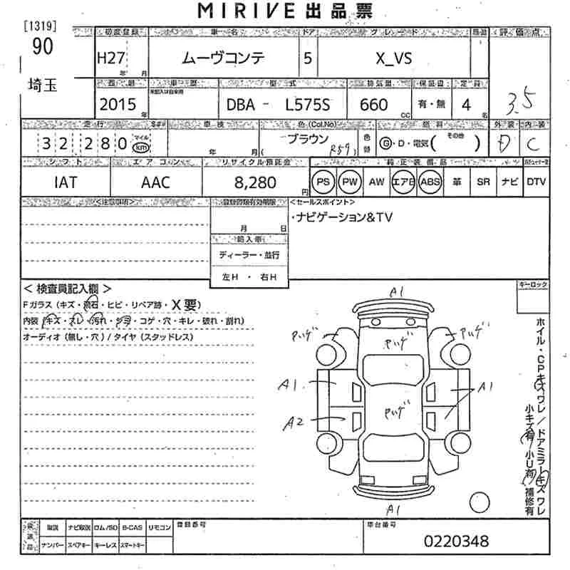 Daihatsu MOVE CONTE с аукциона Японии MIRIVE Saitama лот № 90