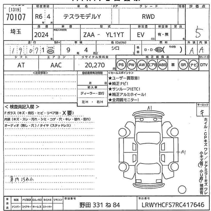 Tesla MODELY с аукциона Японии MIRIVE Saitama лот № 70107