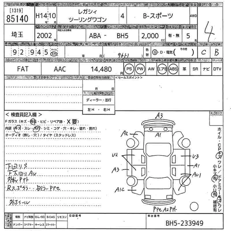 Subaru LEGACY с аукциона Японии MIRIVE Saitama лот № 85140