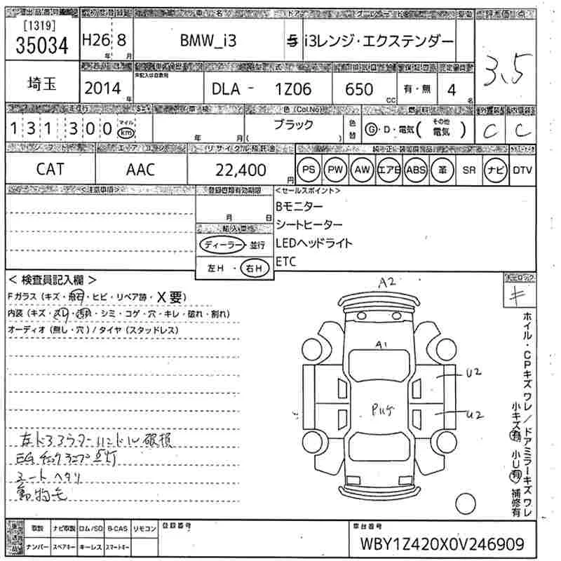 BMW i3 с аукциона Японии MIRIVE Saitama лот № 35034