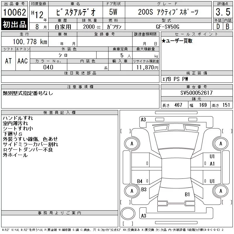 Toyota VISTA ARDEO с аукциона Японии CAA Chubu лот № 10062