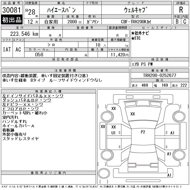 Toyota HIACE VAN с аукциона Японии CAA Chubu лот № 30081