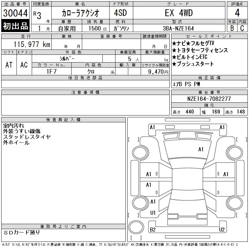 Toyota COROLLA AXIO с аукциона Японии CAA Chubu лот № 30044