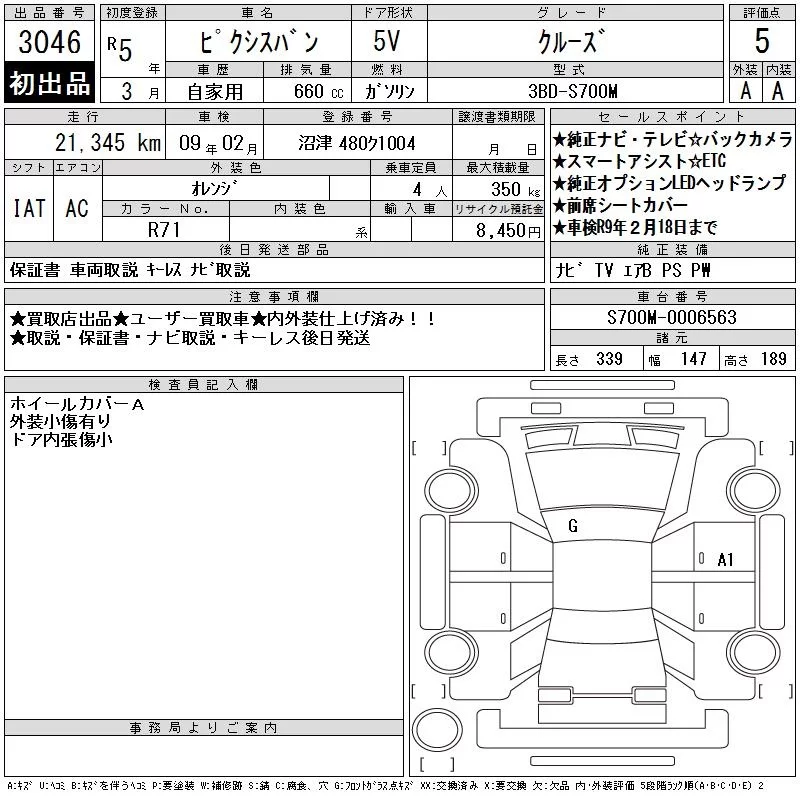 Toyota PIXIS VAN с аукциона Японии CAA Chubu лот № 3046