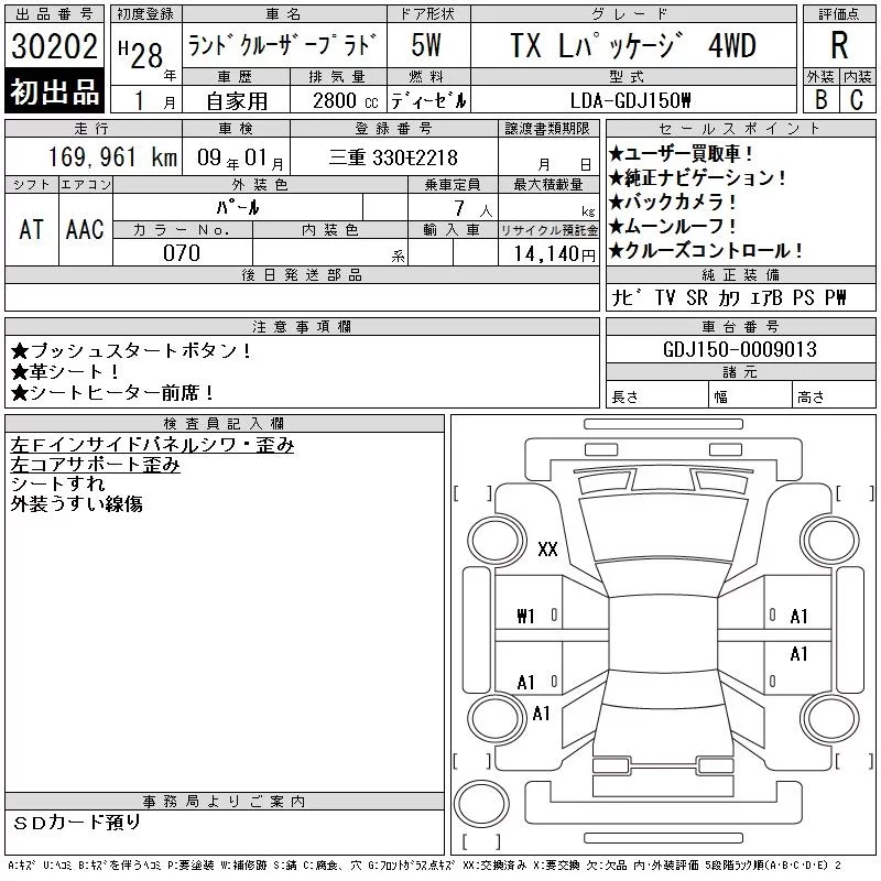Toyota LAND CRUISER PRADO с аукциона Японии CAA Chubu лот № 30202