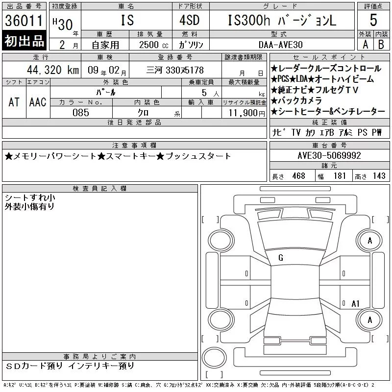 Lexus IS с аукциона Японии CAA Chubu лот № 36011
