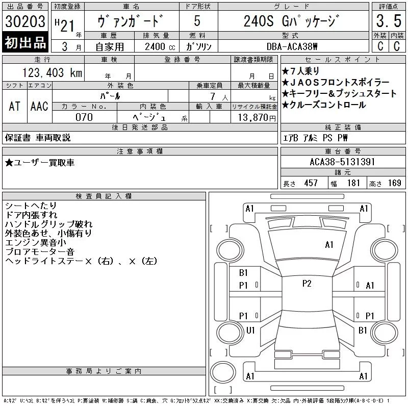 Toyota VANGUARD с аукциона Японии CAA Chubu лот № 30203