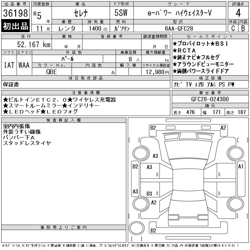 Nissan SERENA с аукциона Японии CAA Chubu лот № 36198