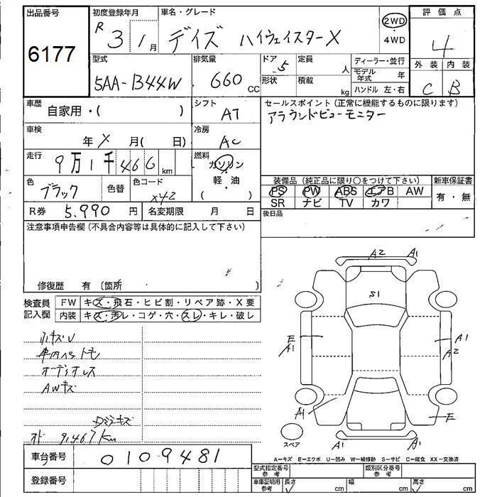 Nissan DAYZ с аукциона Японии JU Fukushima лот № 6177