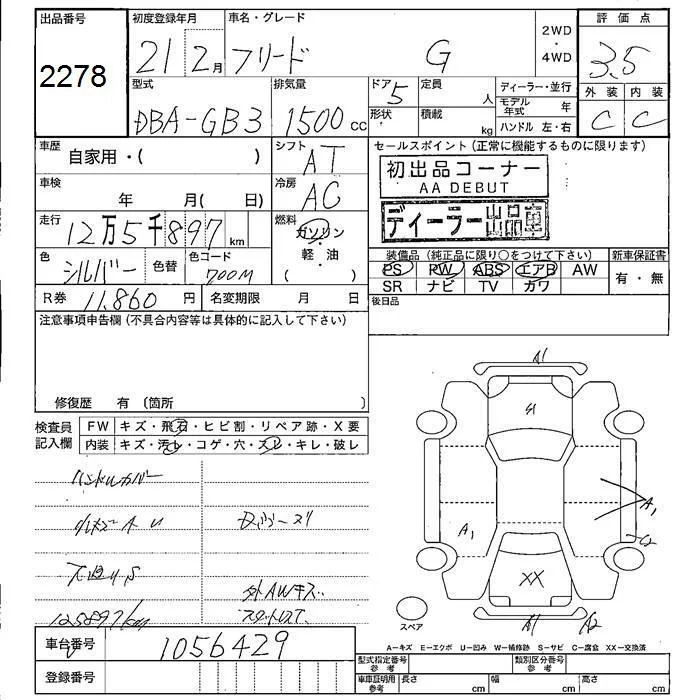 Honda FREED с аукциона Японии JU Fukushima лот № 2278