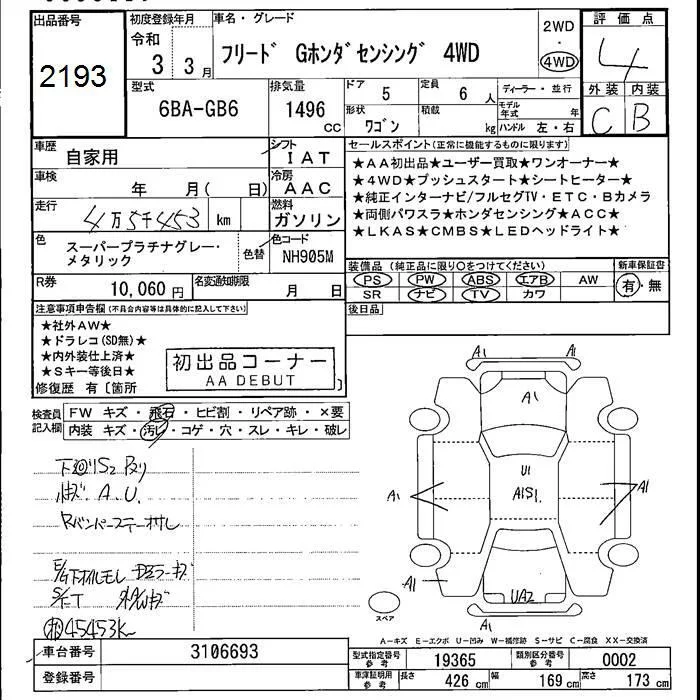 Honda FREED с аукциона Японии JU Fukushima лот № 2193