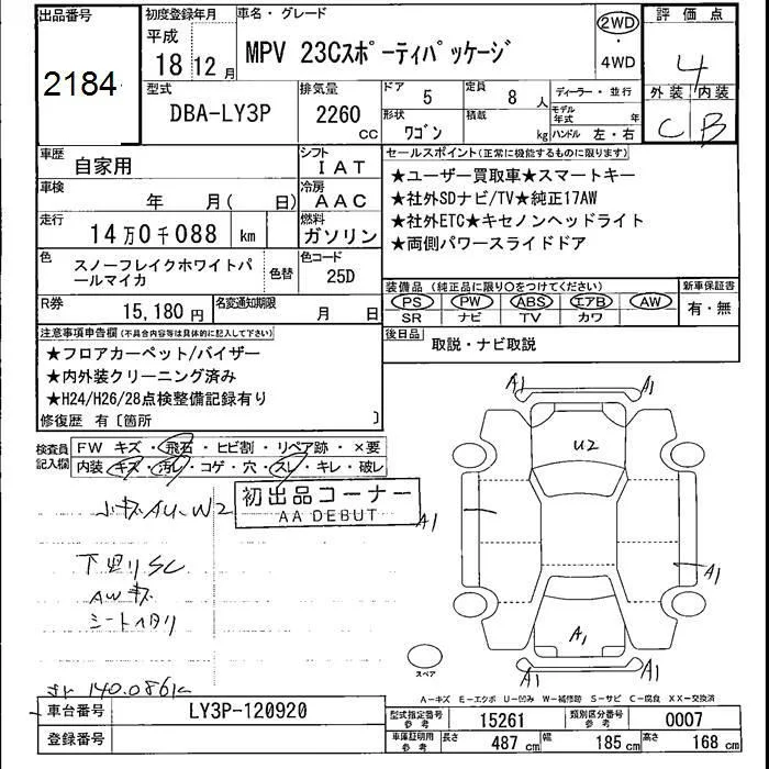 Mazda MPV с аукциона Японии JU Fukushima лот № 2184