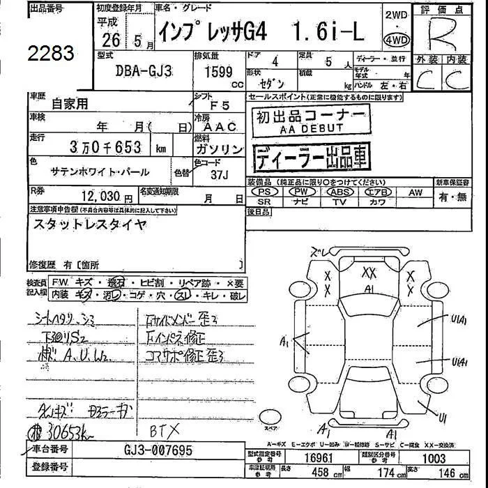 Subaru IMPREZA G4 с аукциона Японии JU Fukushima лот № 2283