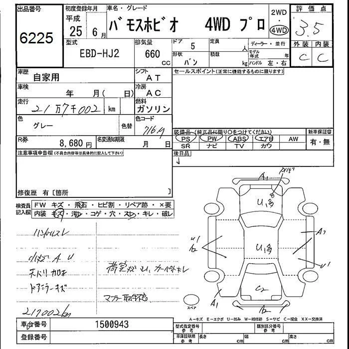 Honda VAMOS с аукциона Японии JU Fukushima лот № 6225