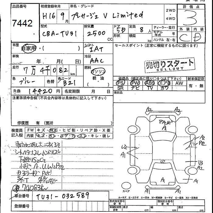 Nissan PRESAGE с аукциона Японии JU Fukushima лот № 7442