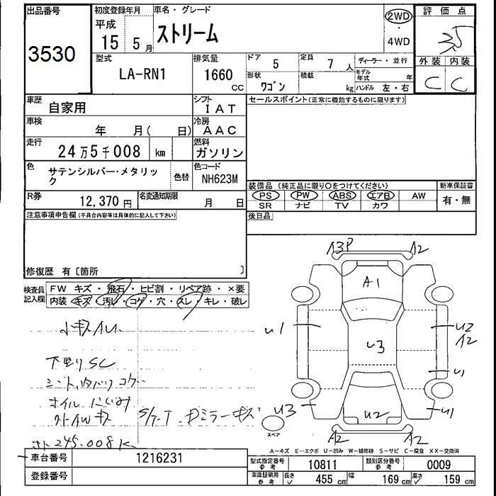 Honda STREAM с аукциона Японии JU Fukushima лот № 3530