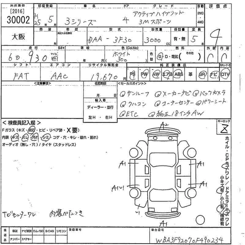 BMW 3-Series с аукциона Японии MIRIVE Osaka лот № 30002