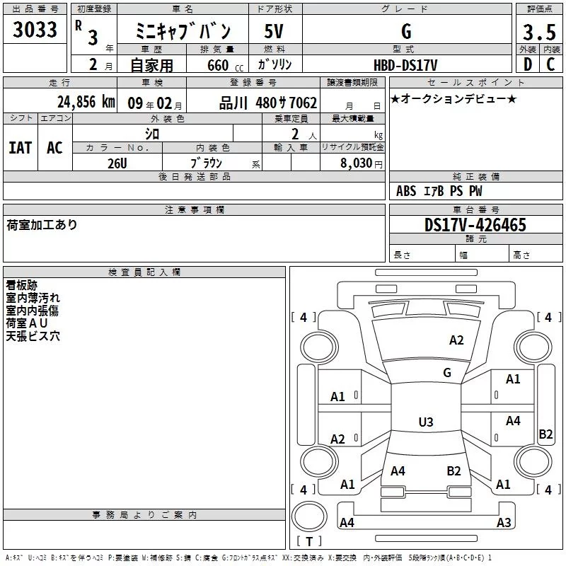 Mitsubishi MINICAB VAN с аукциона Японии TAA Kanto лот № 3033