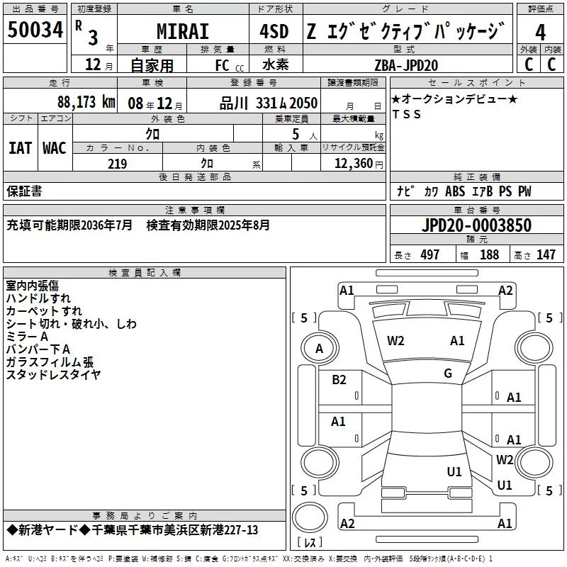 Toyota MIRAI с аукциона Японии TAA Kanto лот № 50034