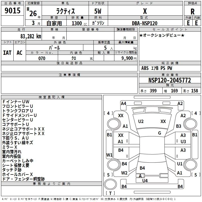 Toyota RACTIS с аукциона Японии TAA Kanto лот № 9015