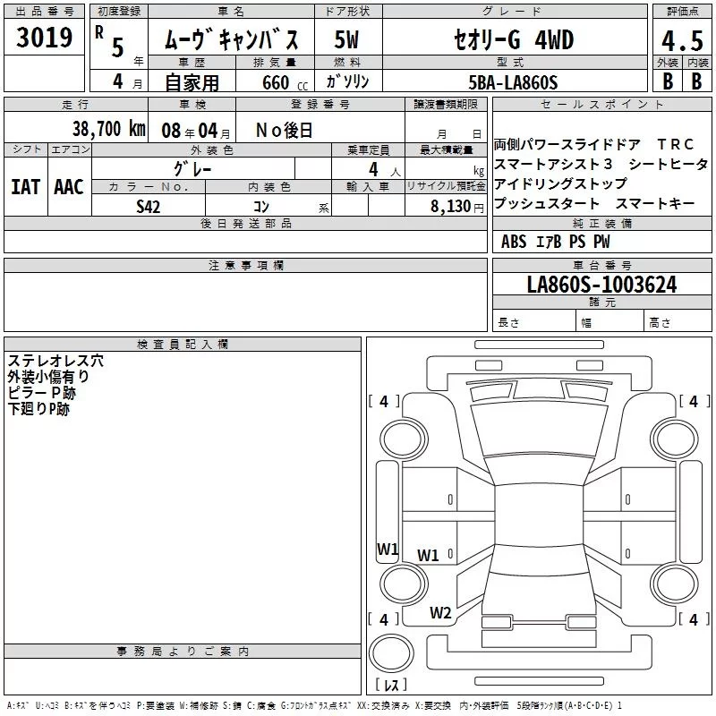 Daihatsu MOVE CANBUS с аукциона Японии TAA Hokkaido лот № 3019