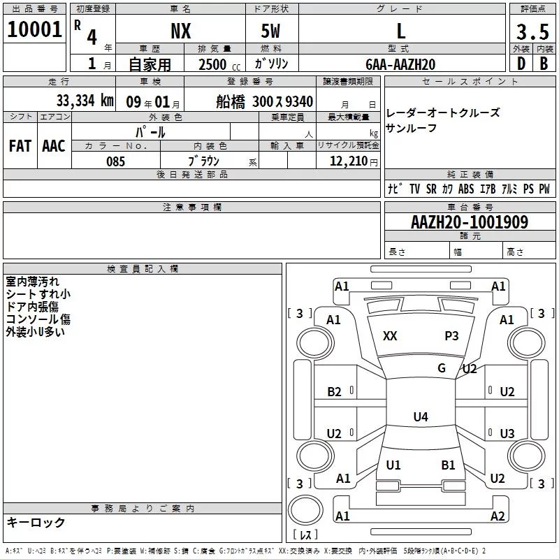 Lexus NX с аукциона Японии TAA Kanto лот № 10001