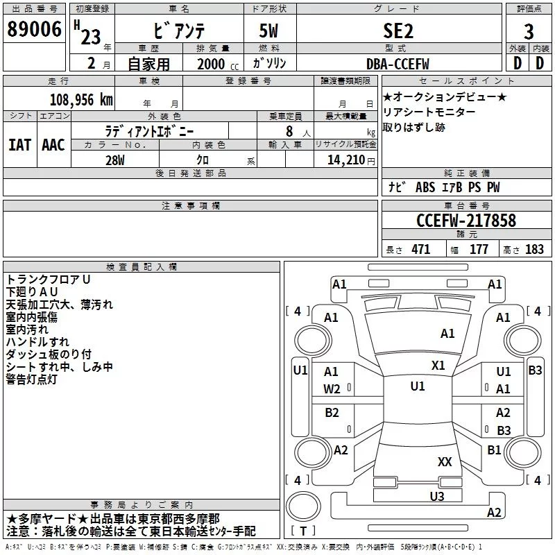 Mazda BIANTE с аукциона Японии TAA Kanto лот № 89006