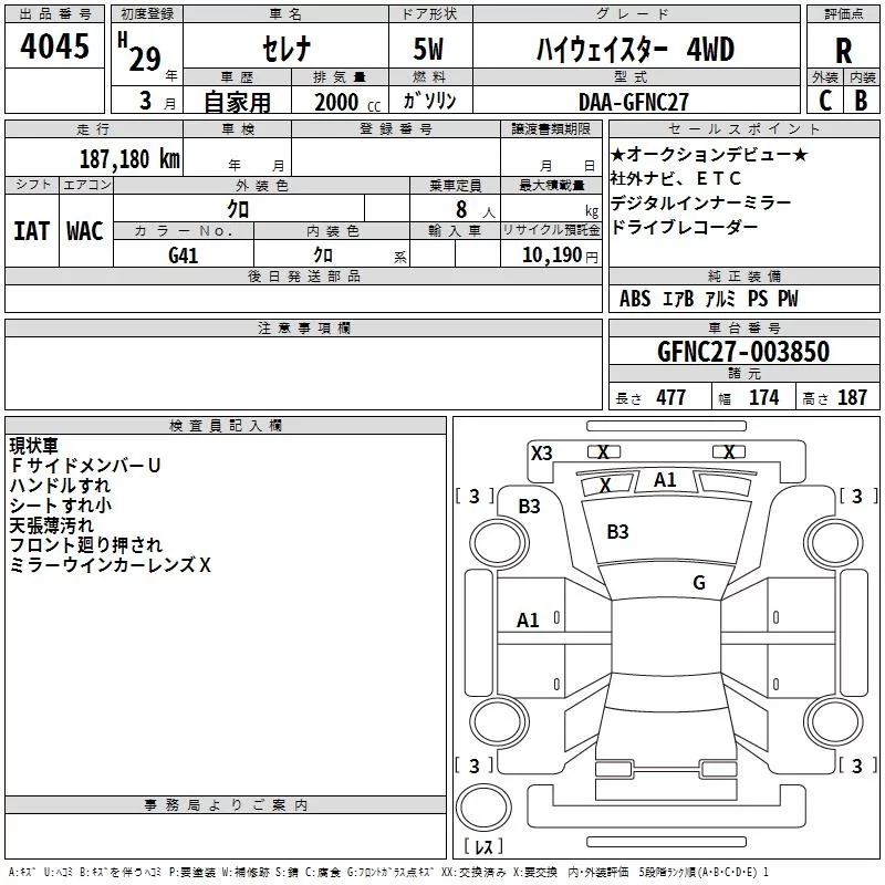 Nissan SERENA с аукциона Японии TAA Kanto лот № 4045