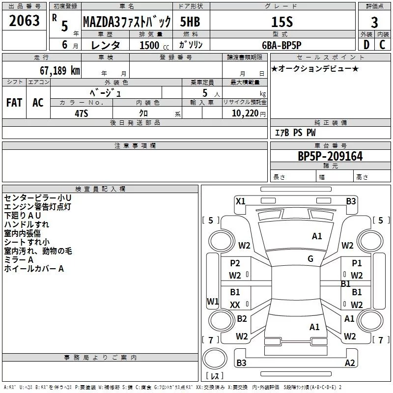 Mazda MAZDA3 с аукциона Японии TAA Kanto лот № 2063