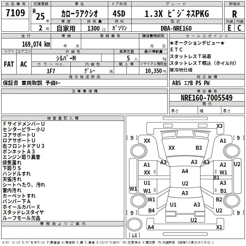 Toyota COROLLA AXIO с аукциона Японии TAA Hokkaido лот № 7109