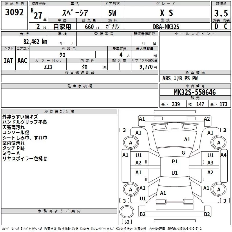 Suzuki SPACIA с аукциона Японии TAA Kanto лот № 3092