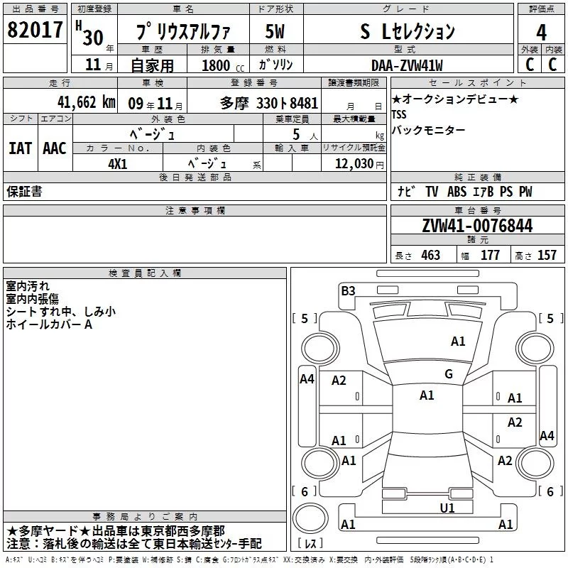 Toyota PRIUS ALPHA с аукциона Японии TAA Kanto лот № 82017