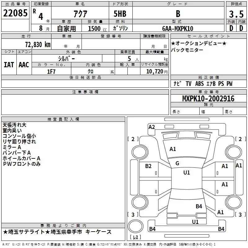 Toyota AQUA с аукциона Японии TAA Kanto лот № 22085