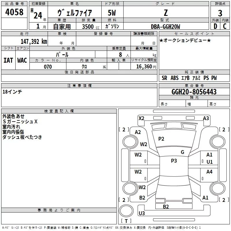 Toyota VELLFIRE с аукциона Японии TAA Kanto лот № 4058