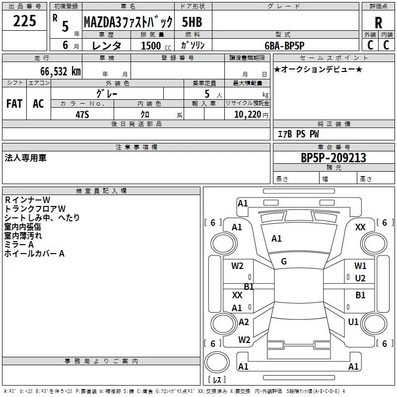 Mazda MAZDA3 с аукциона Японии TAA Kanto лот № 225