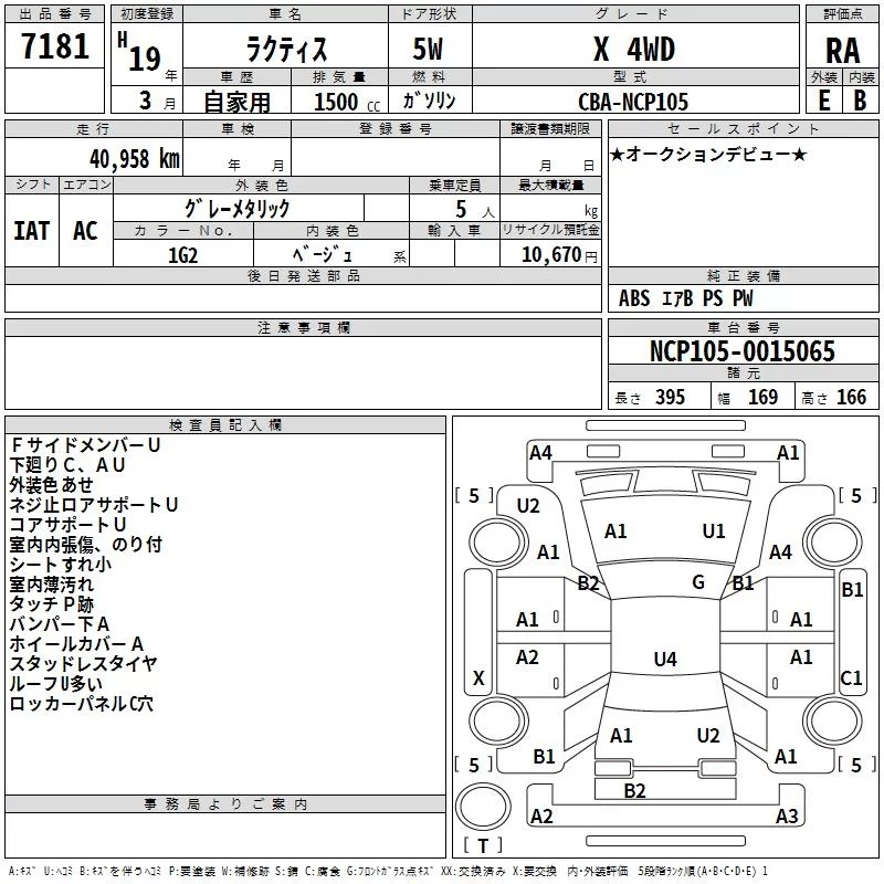 Toyota RACTIS с аукциона Японии TAA Hokkaido лот № 7181