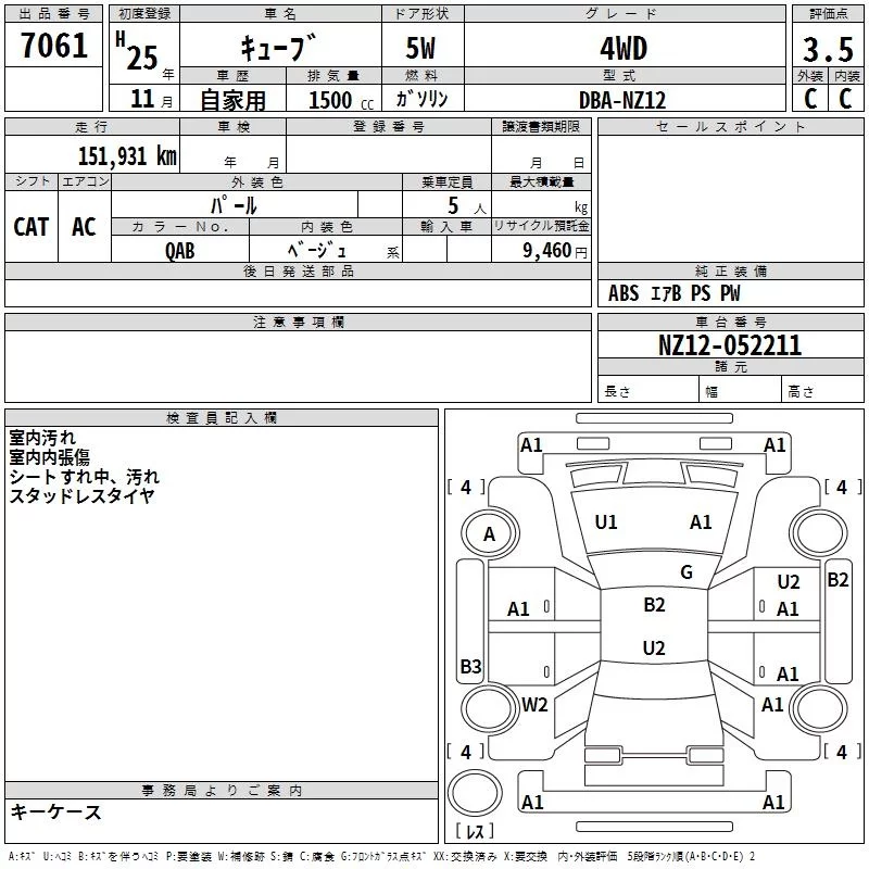 Nissan CUBE с аукциона Японии TAA Tohoku лот № 7061