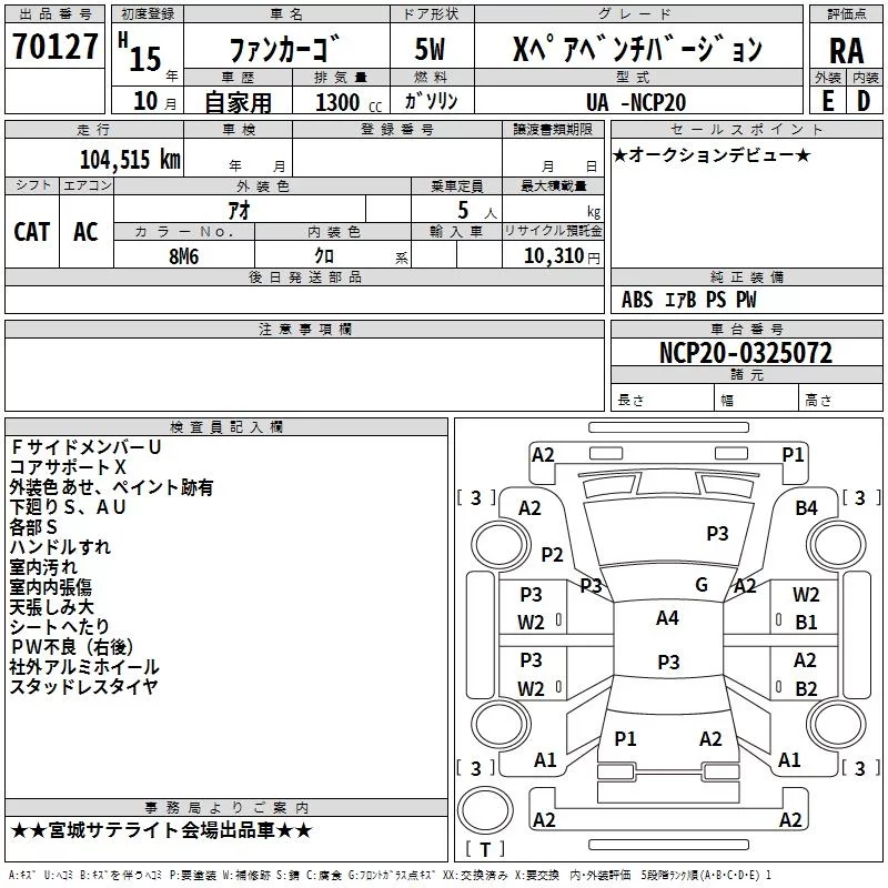 Toyota FUNCARGO с аукциона Японии TAA Tohoku лот № 70127