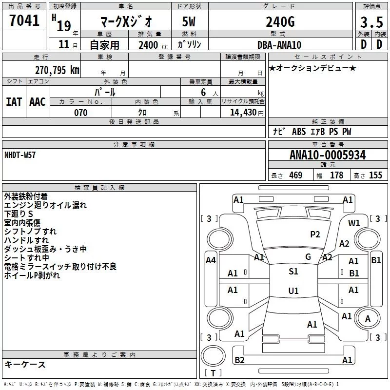 Toyota MARK X ZIO с аукциона Японии TAA Tohoku лот № 7041