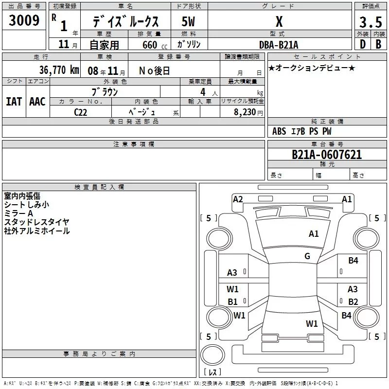 Nissan DAYZ ROOX с аукциона Японии TAA Tohoku лот № 3009