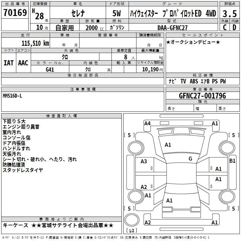 Nissan SERENA с аукциона Японии TAA Tohoku лот № 70169
